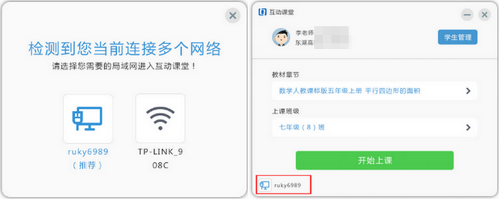 第三步:电脑登录互动课堂时,请注意查看对话框左下角的网络选择。